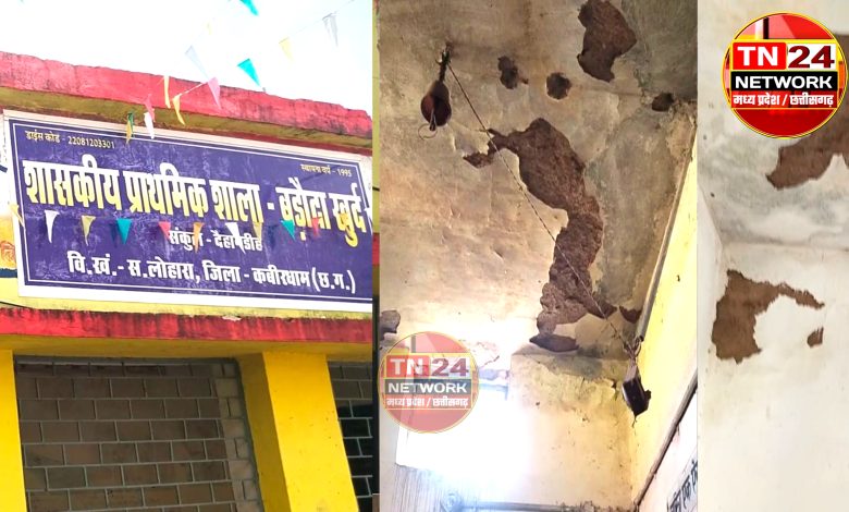 कवर्धा : वि.खंड स.लोहारा प्रा. विद्यालय बड़ौदा खुर्द के स्कूल का हाल बेहाल,भर भराकर गिर रहे पलस्तर, हादसा की रडार में न आ जाय स्कूली बच्चे ?